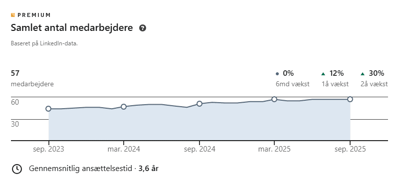 With an average tenure of 3.6 years among employees on LinkedIn (as of September 15, 2025), Tele-Mark A/S is one of the companies in the industry with the highest seniority. LinkedIn documents this nicely on the companies’ company profiles. At the same time, we at Tele-mark have grown by almost 30% in employees over the past two years.